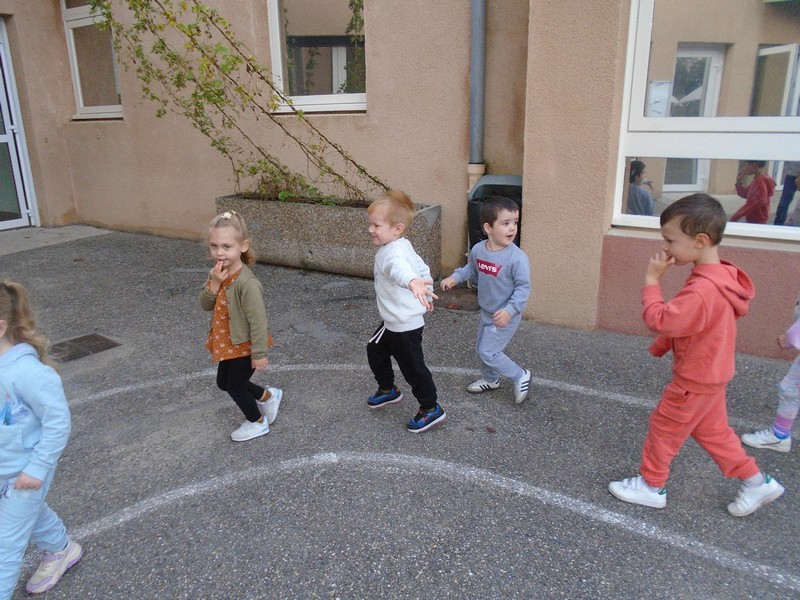 Moyenne section : 345 tours ; les derniers se sont arrêtés au bout de 5mn46 Grande section : 395 tours; les derniers se sont arrêtés au bout de 7mn11