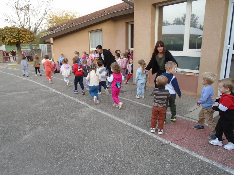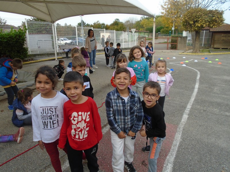 Mardi 15 OCTOBRE c’était le courseton à l’école maternelle. Le but était de courir le plus longtemps possible. Nous avons fait des tours en suivant le chemin tracé au sol dans la cour de récréation (50m). Nous avons aussi encouragé les copains des autres classes. Voici les résultats de tous les élèves de l’école :