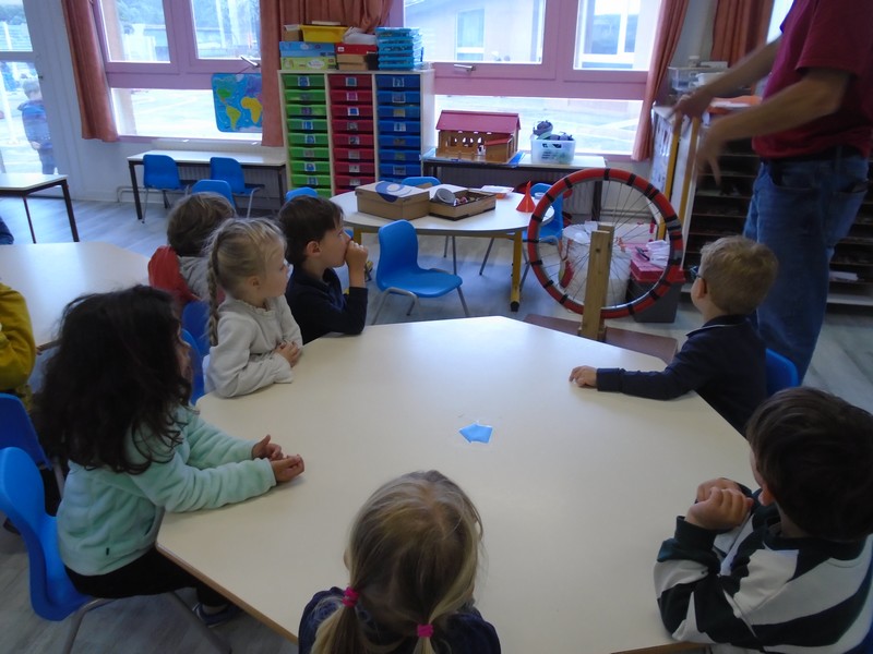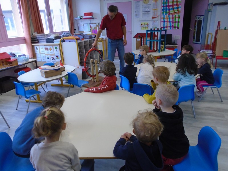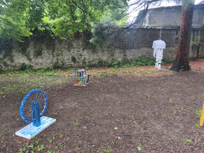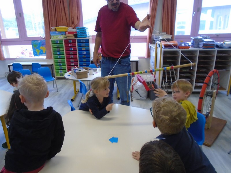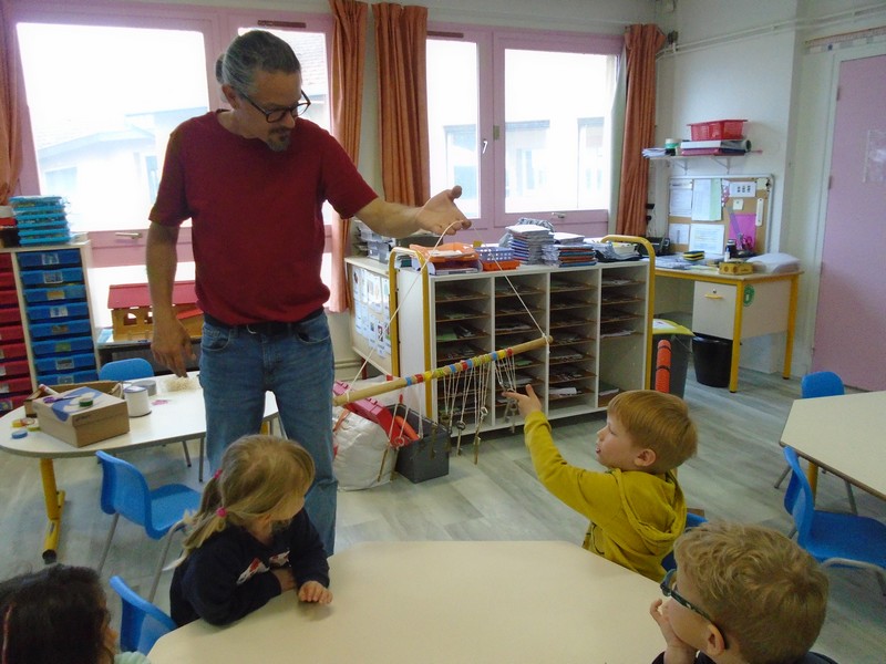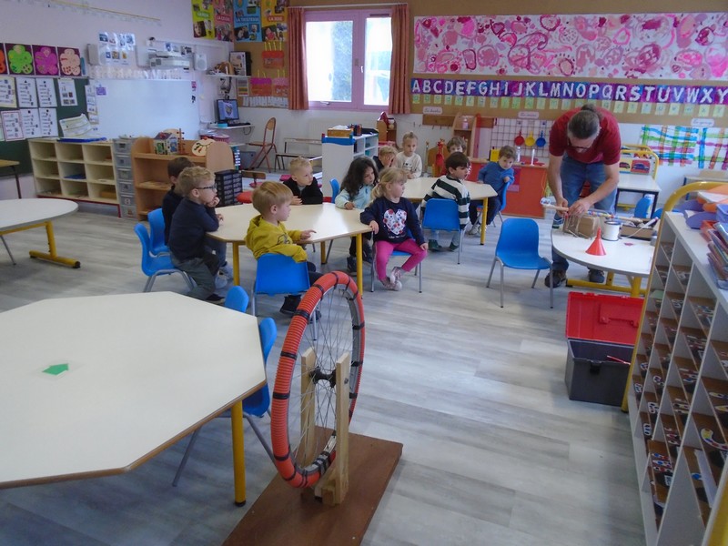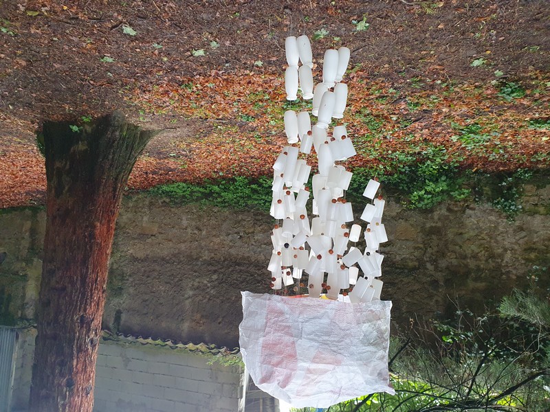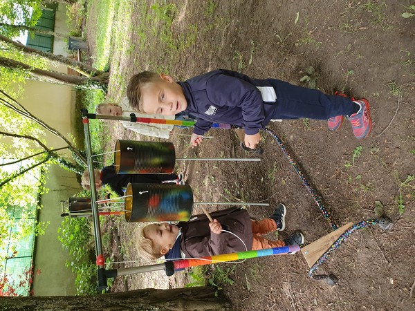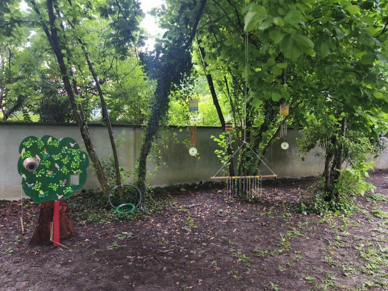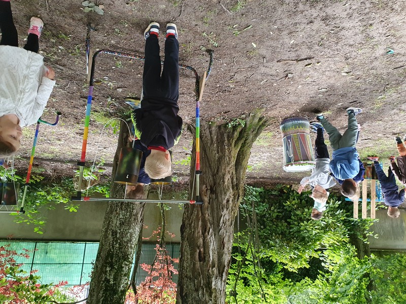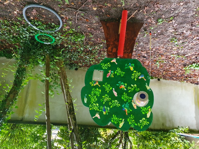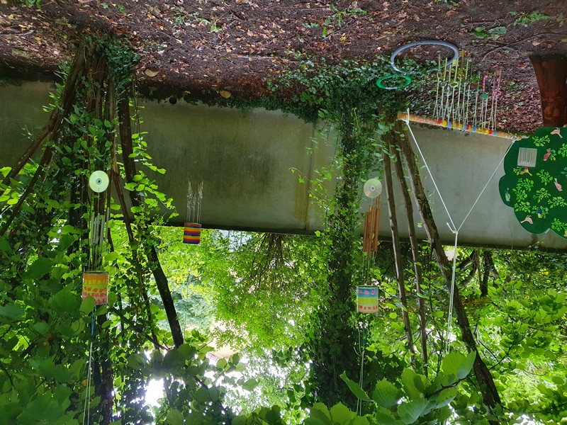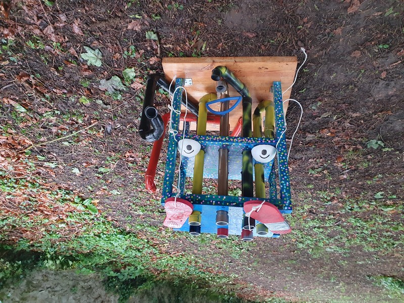 En MAI, nous avons terminé la fabrication de notre œuvre sonore avec Jean-Noël : il y a le le « tubophone -pieuvre », le « carillon-méduse » et la « roue de pluie ». Notre œuvre, « symphonie marine », est exposée sur le sentier artistique du village dans le parc du Clos Couché. Nous avons fait une sortie pour aller voir une partie des réalisations des autres classes le 23 mai.