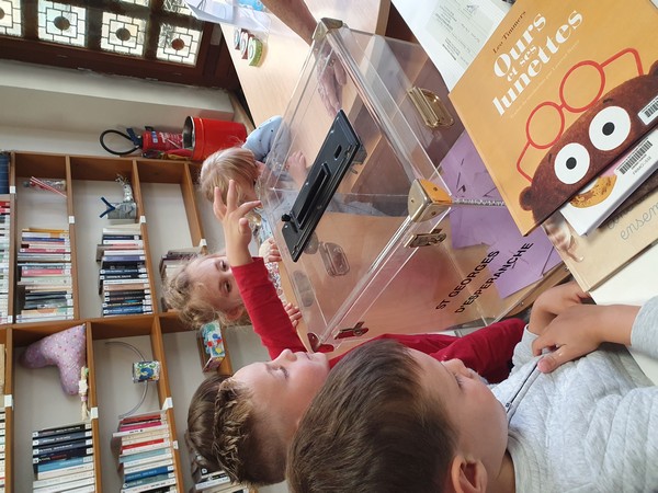 Début mai, Sandra MOTTIN était venue nous présenter les 4 livres en compétition pour le Prix Nord Isère jeunes lecteurs : « Une année ensemble » de Claire Lebourg, « Ours et ses lunettes » de Leo Timmers, « Le terrible grand méchant enfant » de Thomas Gabison et « L’imagier pas si sage » de Richard Marnier. Vendredi 26 MAI, nous nous sommes rendus à la médiathèque du village et nous avons voté pour notre livre préféré. Tout y était pour un vote très sérieux, comme pour les adultes : carte d’électeur, bulletins de votes, urne, isoloirs. Dans notre classe, c’est « Le terrible grand méchant enfant » qui a gagné.
