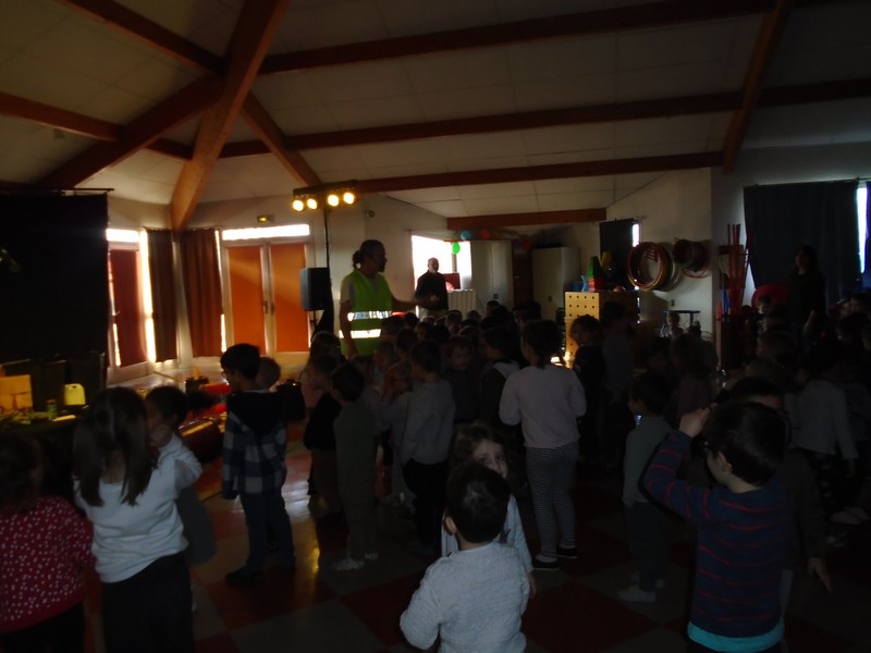 En JANVIER nous avons assisté au spectacle « Recyclage musical » présenté par Jean-Noël Pion de la Compagnie Do Rêve Mi. Sous nos yeux, sont nés des instruments à partir d’objets destinés à être jetés : percussions, tambours, balai n’goni… Jean-Noël nous a embarqués dans un voyage sonore autour du monde tout en nous sensibilisant au tri des déchets. Ce sera le point de départ de notre projet annuel d’école !